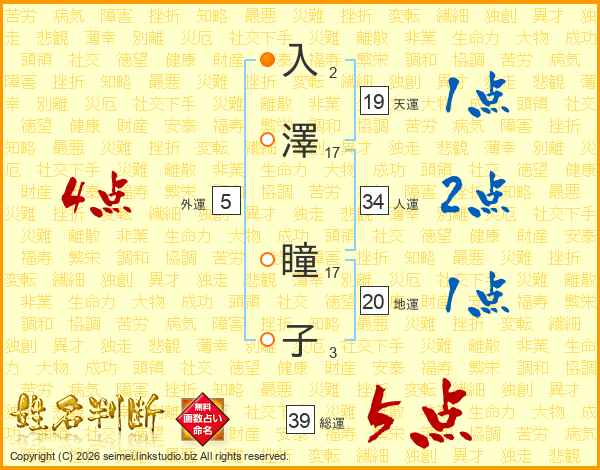 入澤瞳子さんの総運は39画の5点!