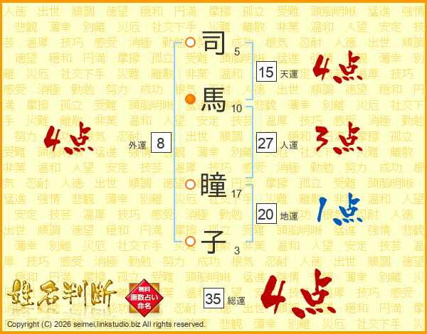 司(5画)馬(10画) 瞳(17画)子(3画)