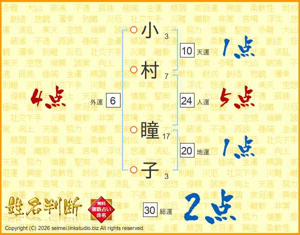 小村瞳子さんの総運は30画の2点!