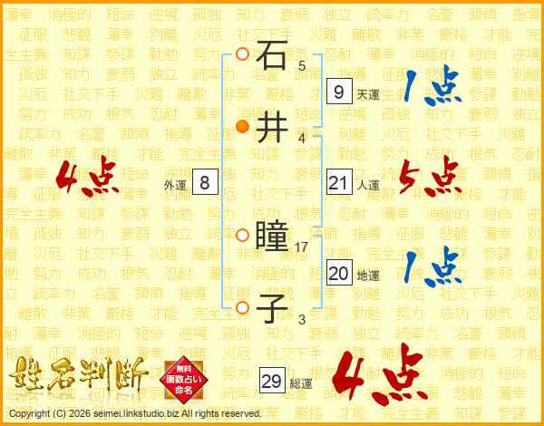 石井瞳子さんの総運は29画の4点!