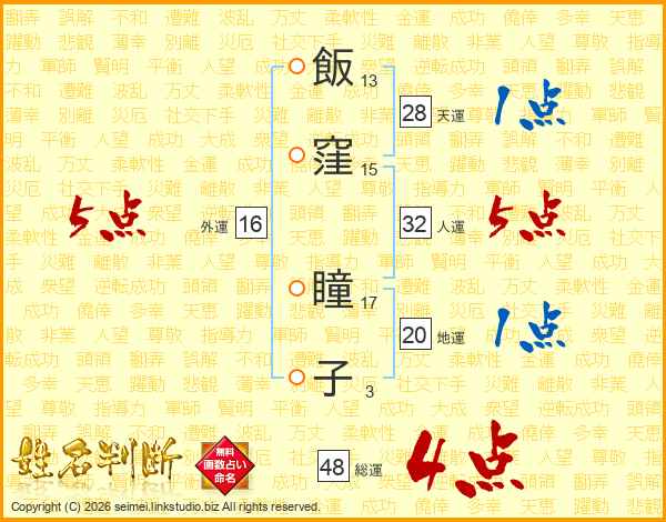 飯窪瞳子さんの総運は48画の4点!