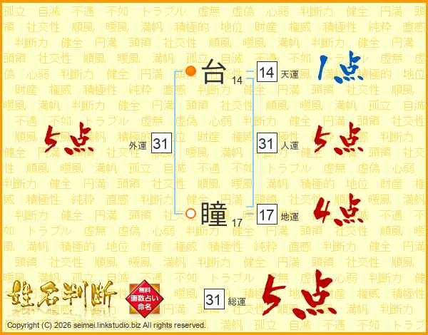 台瞳さんの総運は31画の5点