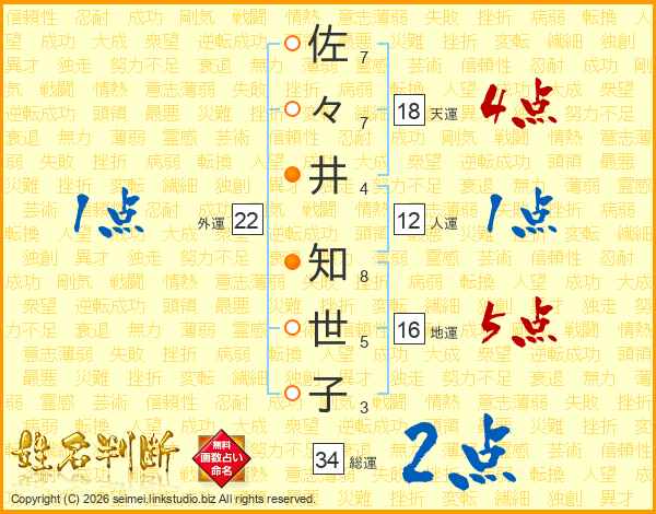 佐々井知世子さんの総運は34画の2点!