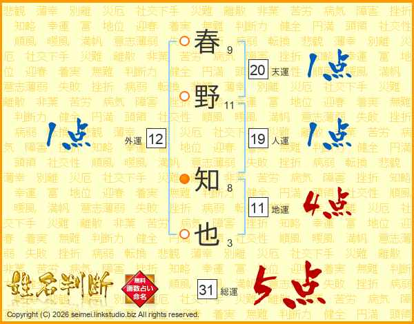 春野知也さんの総運は31画の5点!