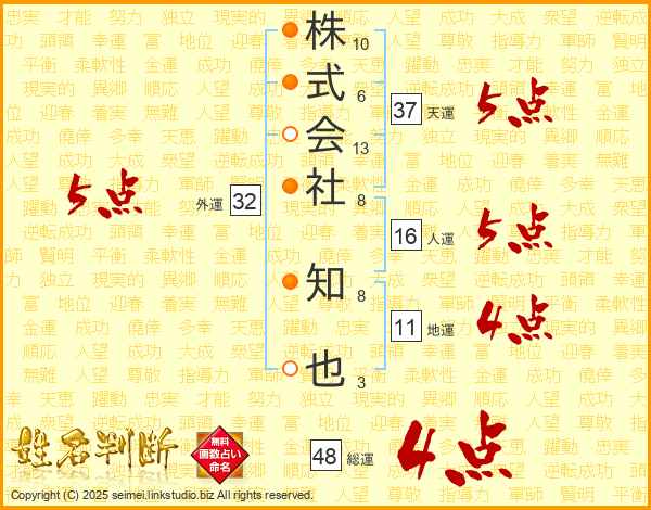 株(10画)式(6画)会(13画)社(8画) 知(8画)也(3画)