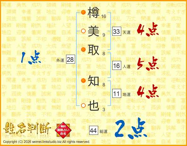 樽美取知也さんの総運は44画の2点!