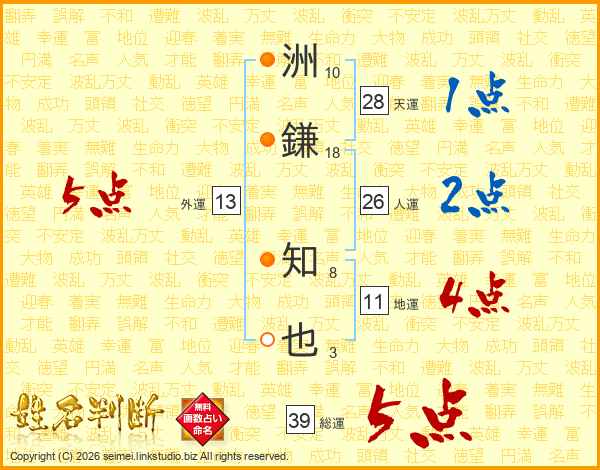洲(10画)鎌(18画) 知(8画)也(3画)