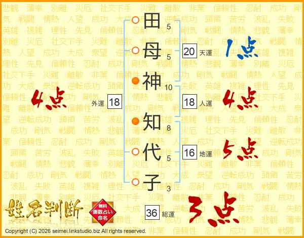 田母神知代子さんの天運は20画の1点!