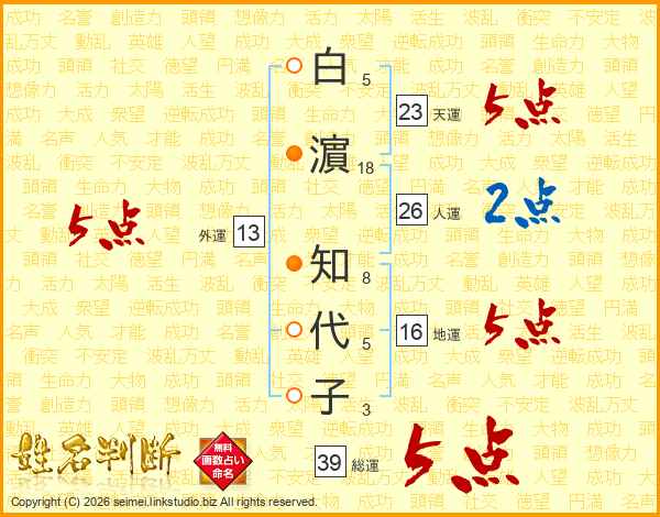 白濵知代子さんの総運は39画の5点!