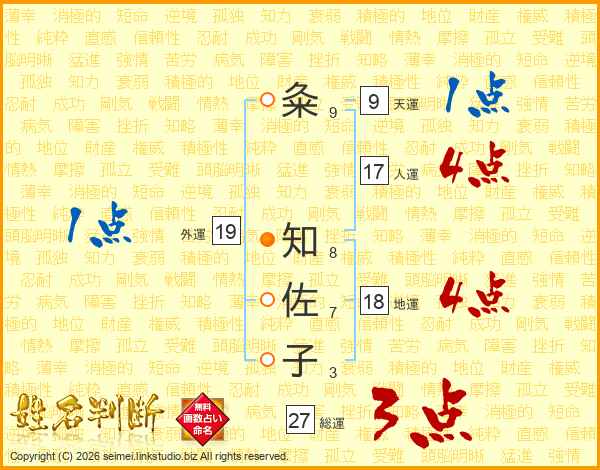粂知佐子さんの総運は27画の3点!