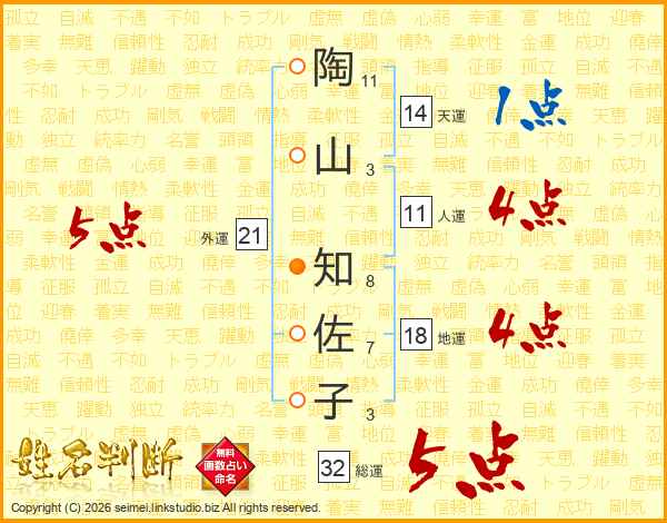 陶山知佐子さんの総運は32画の5点!