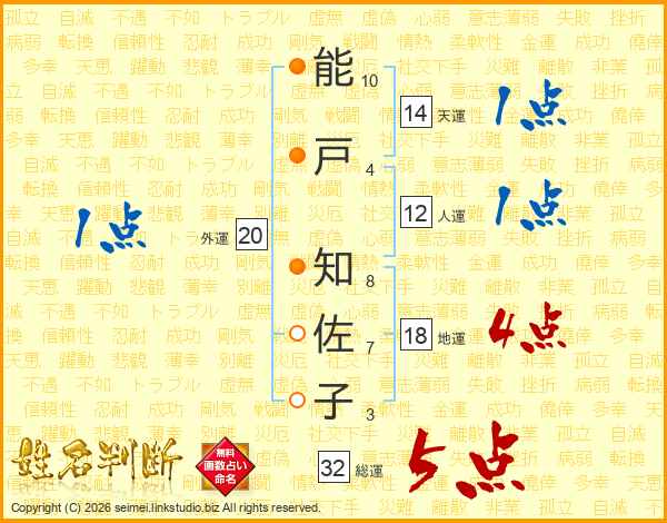 能戸知佐子さんの総運は32画の5点!