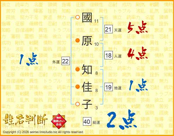 國原知佳子さんの天運は21画の5点!