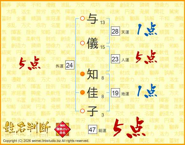 与儀知佳子さんの総運は47画の5点!