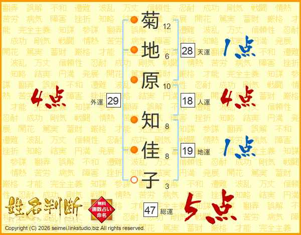 菊地原知佳子さんの総運は47画の5点!