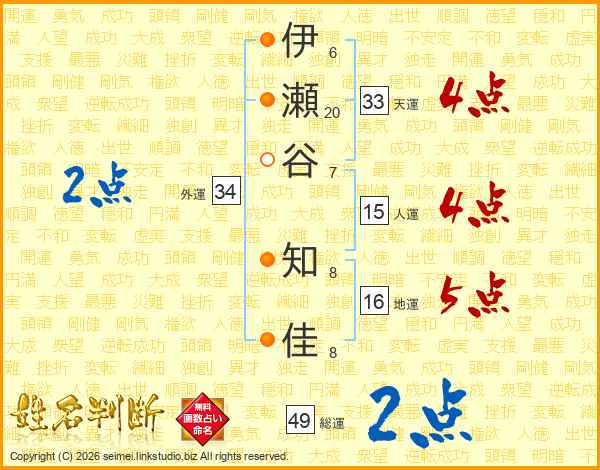 伊瀬谷知佳さんの総運は49画の2点!