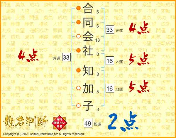合(6画)同(6画)会(13画)社(8画) 知(8画)加(5画)子(3画)