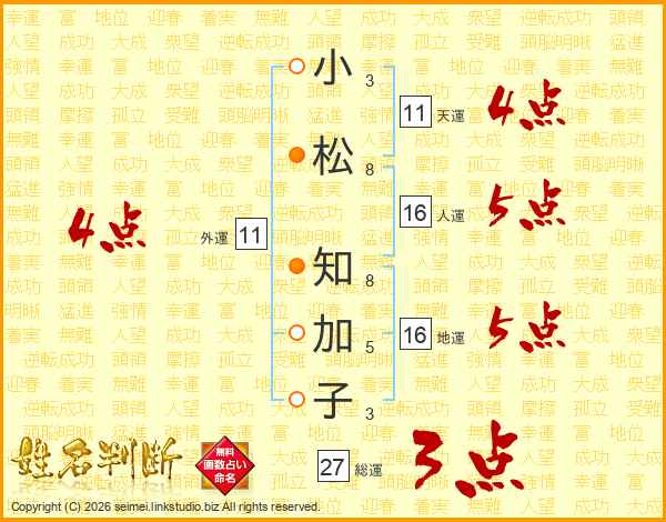 小(3画)松(8画) 知(8画)加(5画)子(3画)