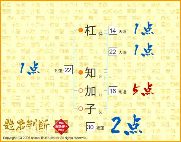 杠知加子さんの人運は22画の1点!