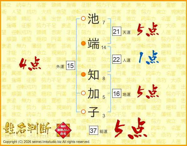 池端知加子さんの総運は37画の5点!