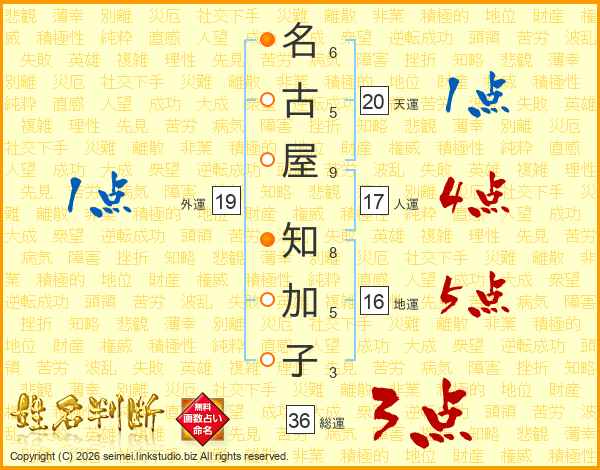 名古屋知加子さんの総運は36画の3点!