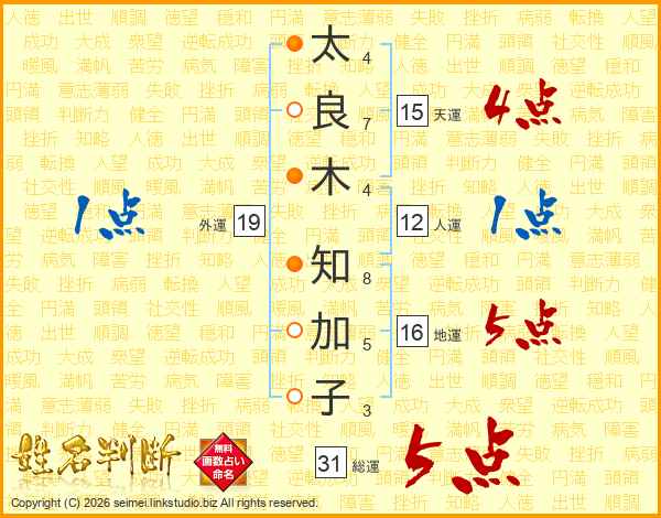 太良木知加子さんの総運は31画の5点!
