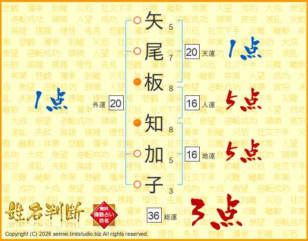 矢(5画)尾(7画)板(8画) 知(8画)加(5画)子(3画)