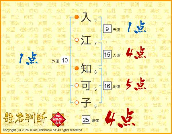 入江知可子さんの総運は25画の4点!