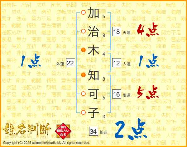 加治木知可子さんの天運は18画の4点!