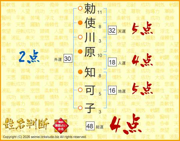 勅使川原知可子さんの総運は48画の4点!