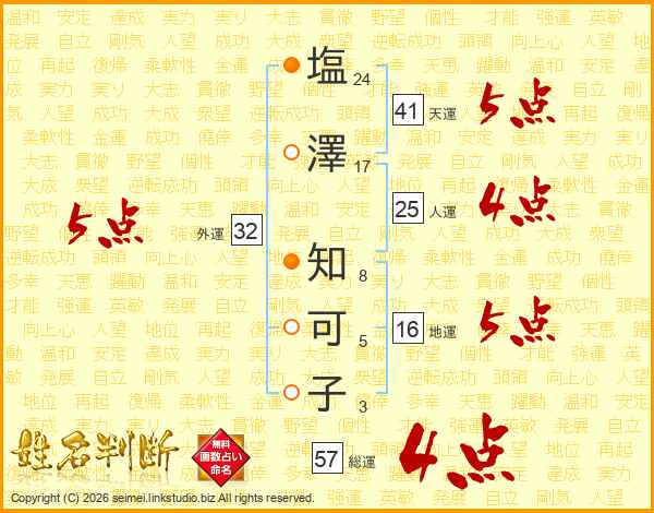 塩澤知可子さんの外運は32画の5点!