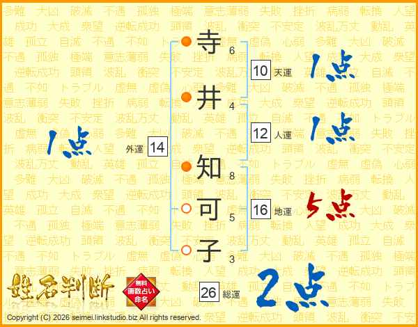寺井知可子さんの総運は26画の2点!