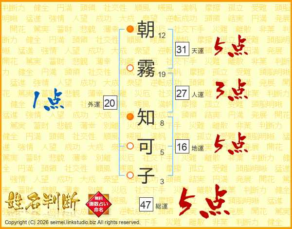 朝霧知可子さんの総運は47画の5点!