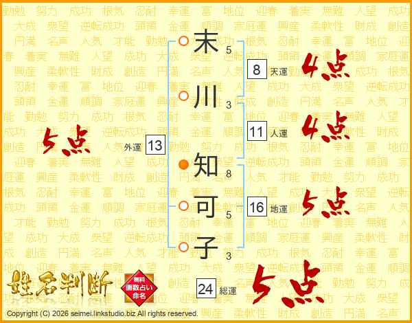 末川知可子さんの外運は13画の5点!