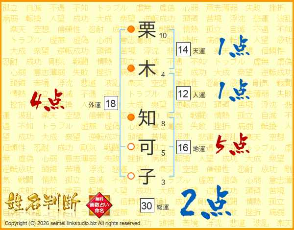 栗木知可子さんの天運は14画の1点!