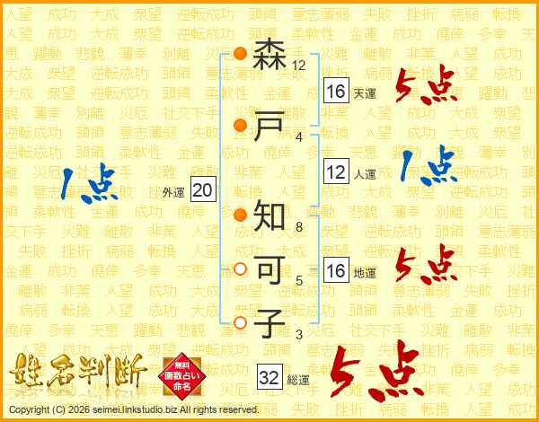 森戸知可子さんの総運は32画の5点!