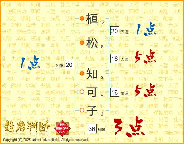植松知可子さんの総運は36画の3点!