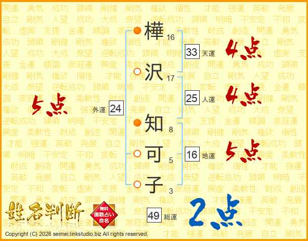 樺沢知可子さんの総運は49画の2点!