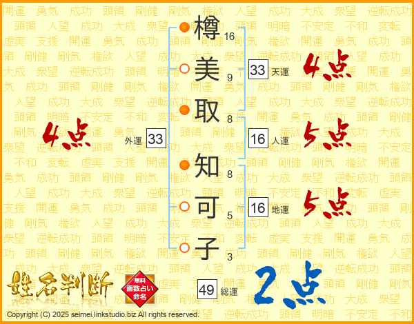 樽美取知可子さんの総運は49画の2点!