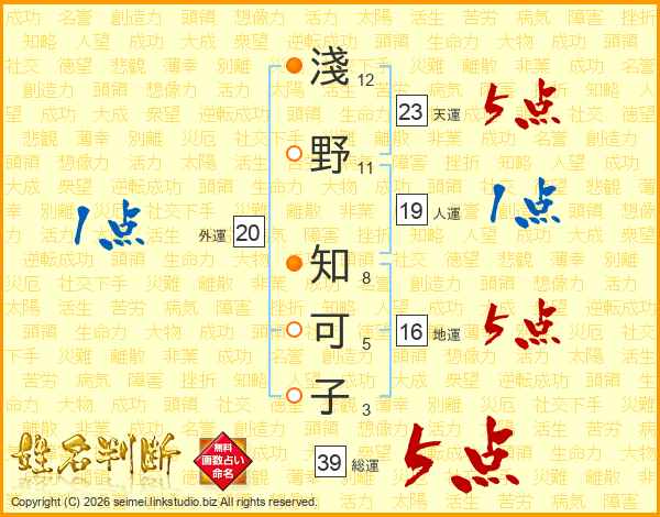淺野知可子さんの総運は39画の5点!