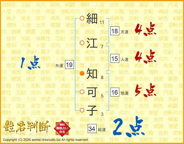 細江知可子さんの総運は34画の2点!