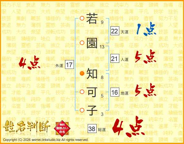 若園知可子さんの総運は38画の4点!