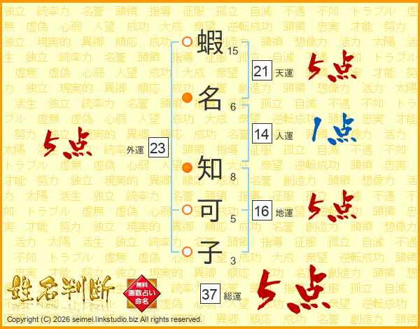蝦(15画)名(6画) 知(8画)可(5画)子(3画)