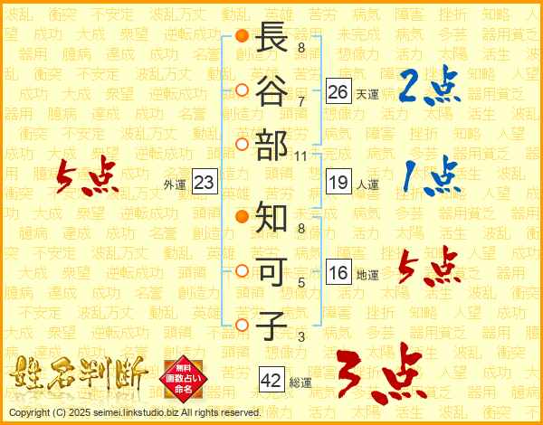 長谷部知可子さんの総運は42画の3点!