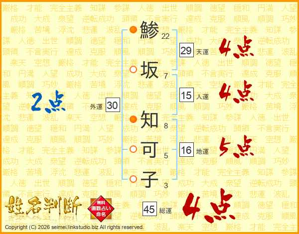 鯵坂知可子さんの天運は29画の4点!