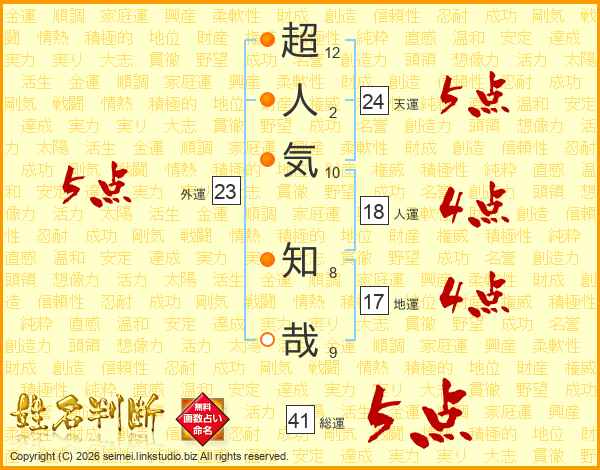 超人気知哉さんの総運は41画の5点!