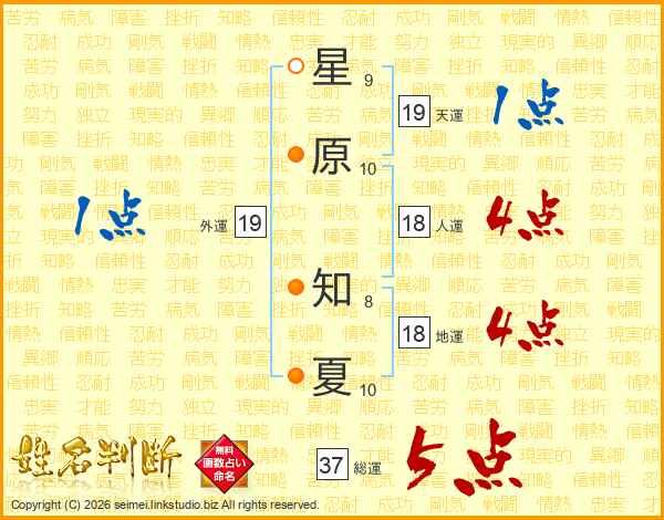 星原知夏さんの総運は37画の5点!