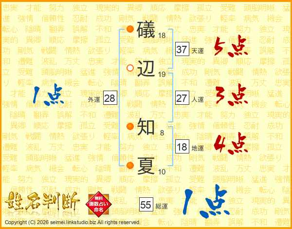 礒(18画)辺(19画) 知(8画)夏(10画)