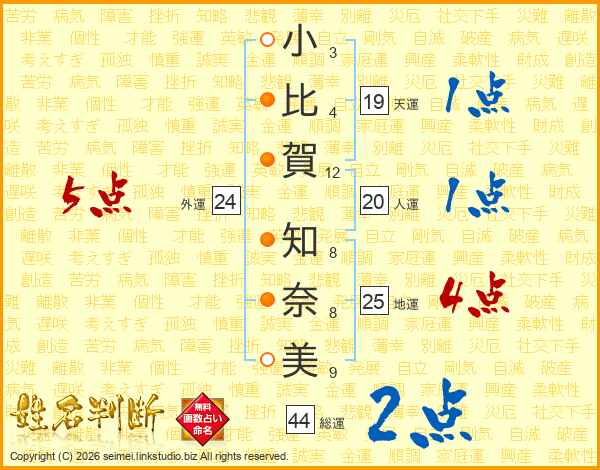 小比賀知奈美さんの総運は44画の2点!