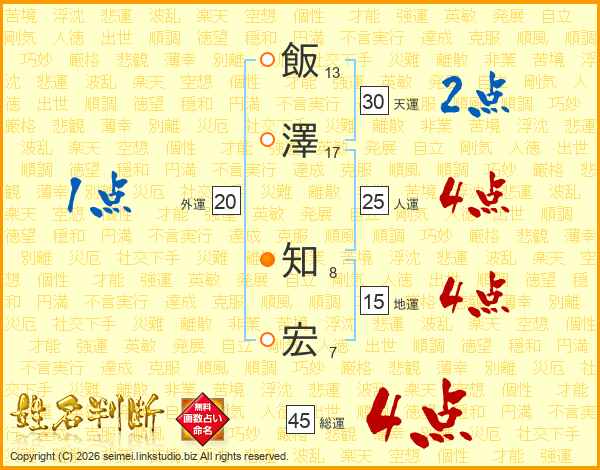 飯澤知宏さんの総運は45画の4点!